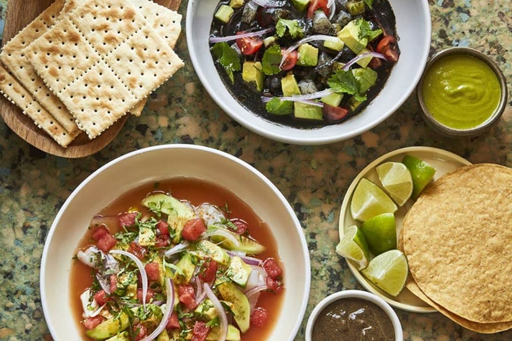 Inspired by Baja, Mexico, the menu at LMNO includes traditional, coastal Mexican cuisine such as steak aguachiles, birria dirty tacos, and pescado zarandeado. The restaurant's live-fire grill adds an extra layer of authenticity and helps cook fresh, homemade tortillas. LMNO’s aesthetic is rich in vintage accents and pastel colors. Within the spacious restaurant, visitors can explore a bookshop, an art gallery, and even a studio-style recording venue.